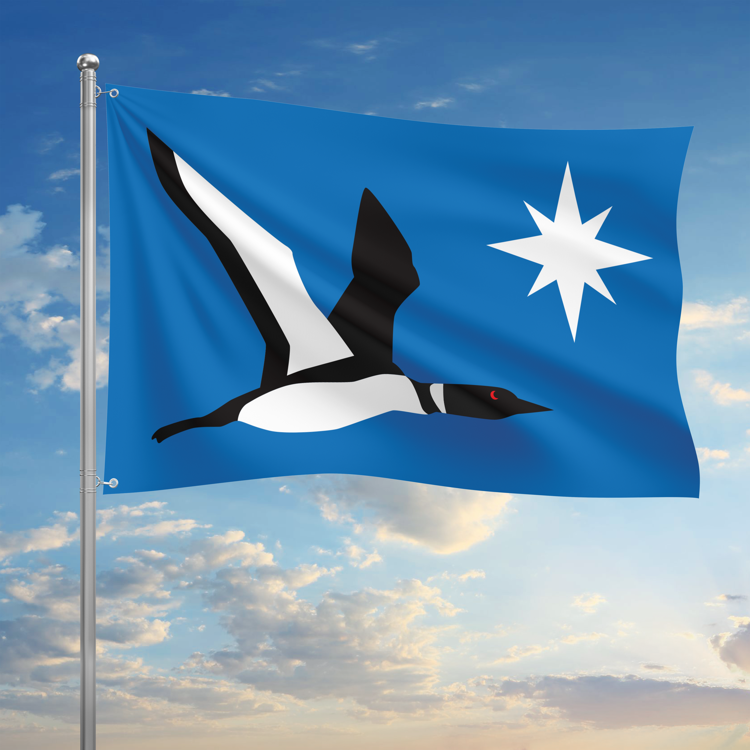When the Minnesota State Flag was going through its redesign process I created my own version. I’m originally from Wisconsin but have been a resident of Minnesota for the past 5 years. Minnesota has felt like home since moving here and I’ve always associated the state with loons, friendliness, and the north star. I decided to combine these concepts in the flag design as they truly represent the state to me.